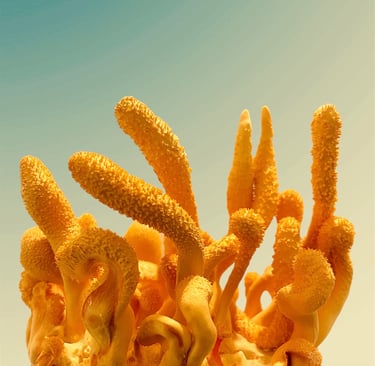 5. Fruiting Body Development: Fruiting bodies, resembling the characteristic shape of wild Cordyceps, begin to emerge from primordia. Adequate humidity and ventilation are essential for the growth of mature fruiting bodies.