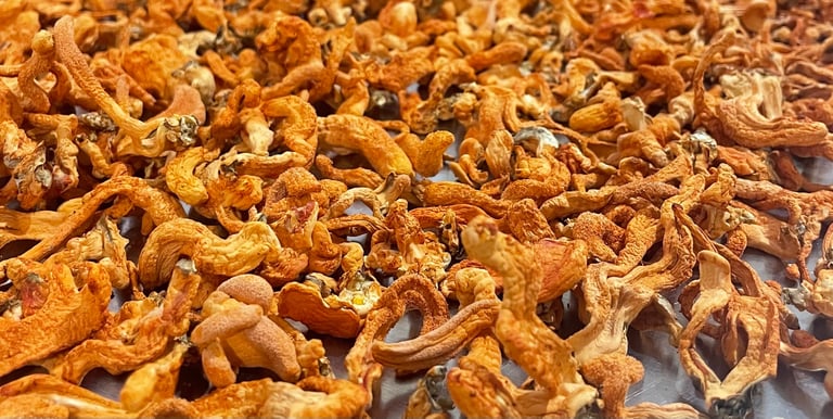 7. Drying and Storage: Drying the harvested Cordyceps militaris contributes to long shelf life and retains its medicinal characteristics. To keep the mushroom's quality constant, different drying methods such as a low temperature dehydrator are used.