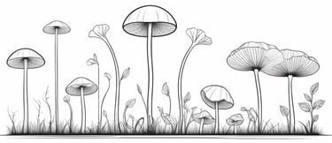 Discover the convergence of quantum principles with the elegance of mushroom growth.
